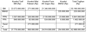 dimana penagihan untuk kekurangan sebesar Rp3.743.333.000,00 (kolom 2.a.1) sesuai dengan SPKTNP-384/KPU.01/2013 tanggal 25 September 2013 dan penagihan untuk kekurangan sebesar Rp37.770.000,00 masuk ke dalam SPKTNP-383/KPU.01/2013 tanggal 25 September 2013, yaitu SPKTNP yang disengketakan ini.